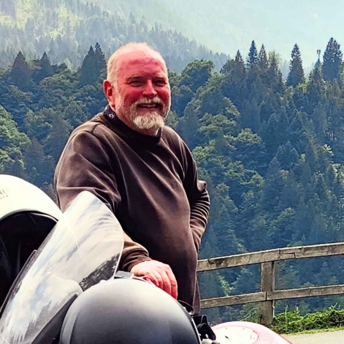 En glad motorcykelentusiast tar en paus vid en fantastisk utsiktsplats, omgiven av tät bergsskog och frisk luft. Med motorcykeln redo för nästa äventyr speglar bilden den sanna känslan av frihet på två hjul. För den som älskar att utforska världen en väg i taget! 🏍️🌲✨ #KaBomBikers